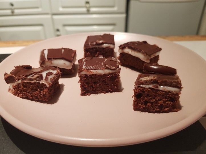 If you like after eight mints, you will love these chocolate mint squares, cut into little bite size squares, one will not be enough!