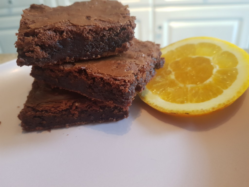 These are the best brownies I’ve ever made. They are so moist, very gooey with a crunchy top. The orange flavouring isn’t over powering so they are just perfect.